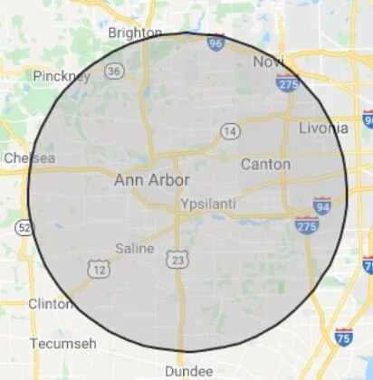 No Mileage fees within 25 miles of office - this is an estimate (see map below). $1/mile charged outside travel radius. Mileage is charged as the car drives, not as the bird flies.